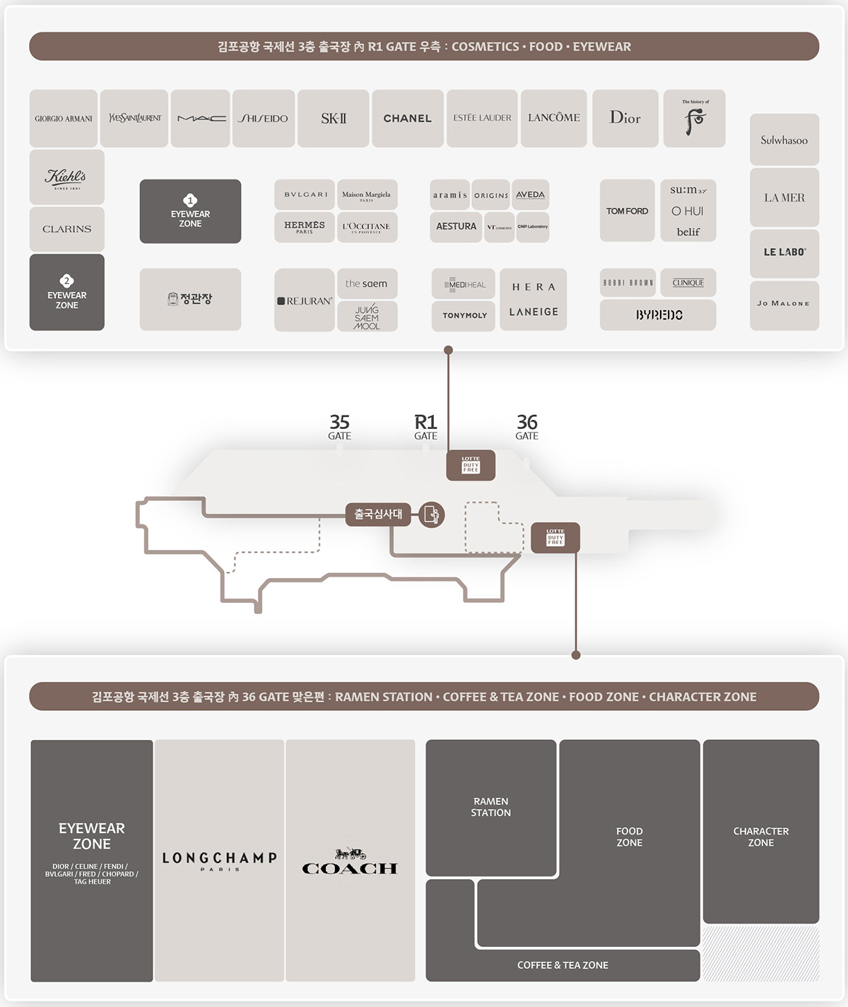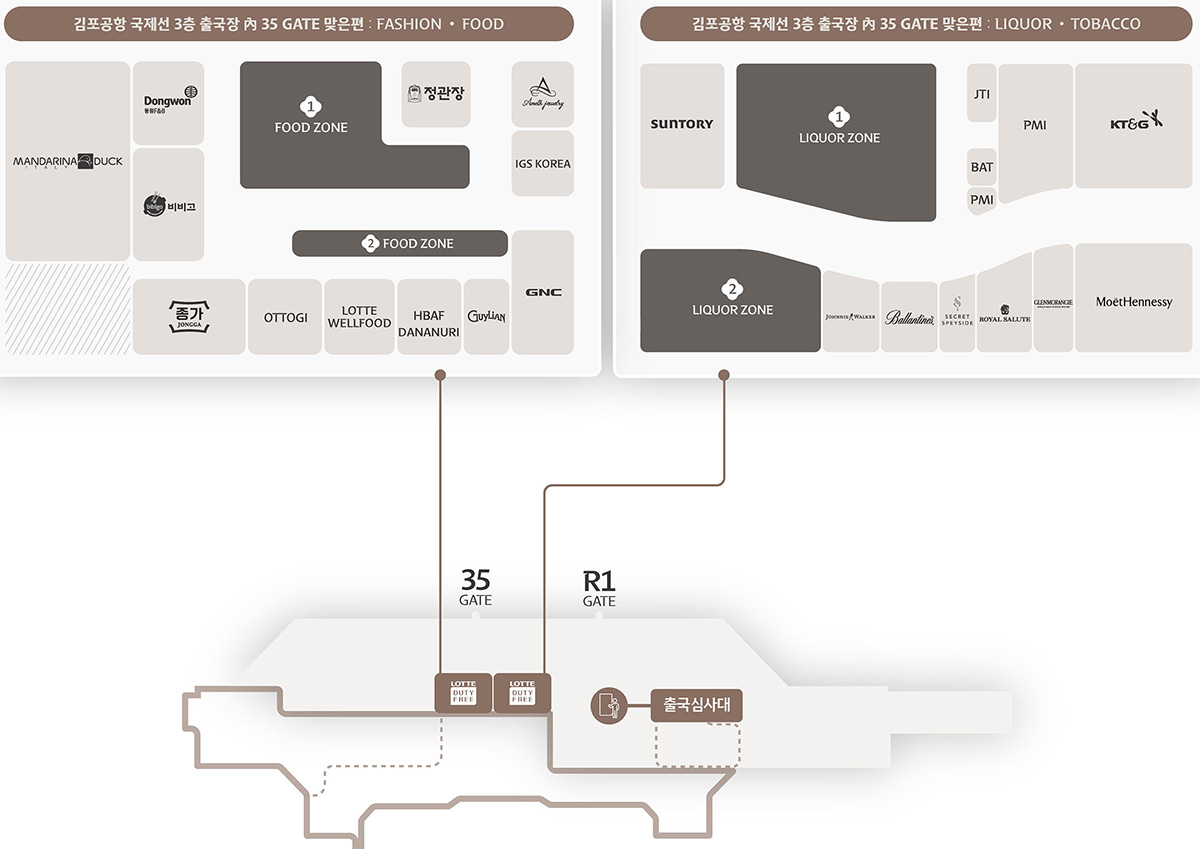 乐天免税店金浦机场店西侧品牌列表