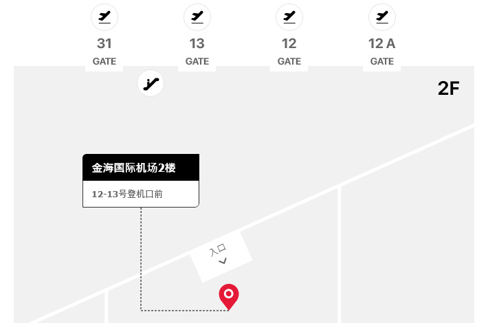 上图为韩国乐天免税店在金海国际机场取货处,2 楼 12-13 号登机口前。