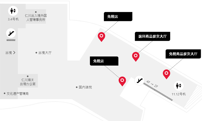上图为乐天免税店仁川港客运站取货处,位于 4 层。