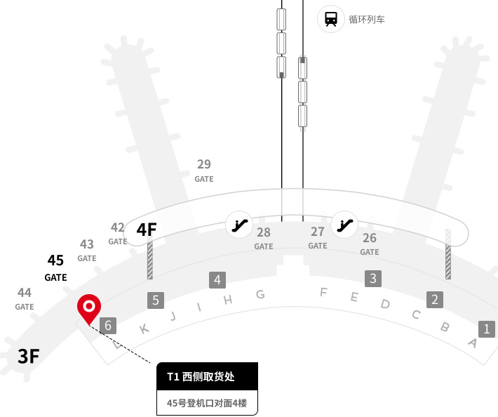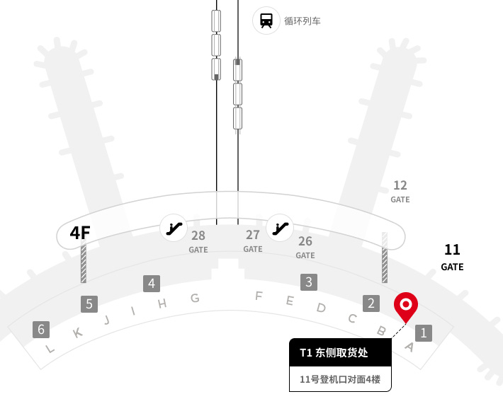 东侧取货处咨询电话:82-32-743-2650,循环列车下车后 119 号登机口 4 楼。
